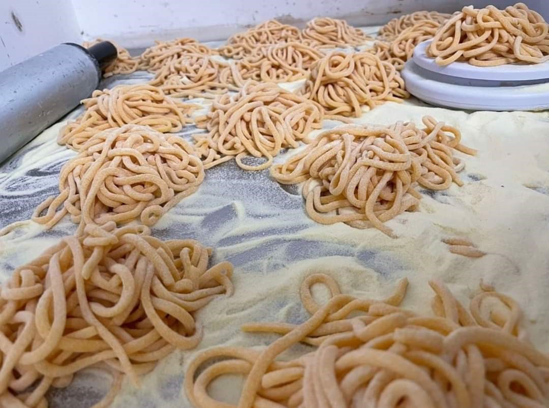 The festival includes the cooking of pasta made with the dough of bread of ancient origins. Today there are revisited versions, with condiments according to local tradition. The original one was served with tomato sauce.