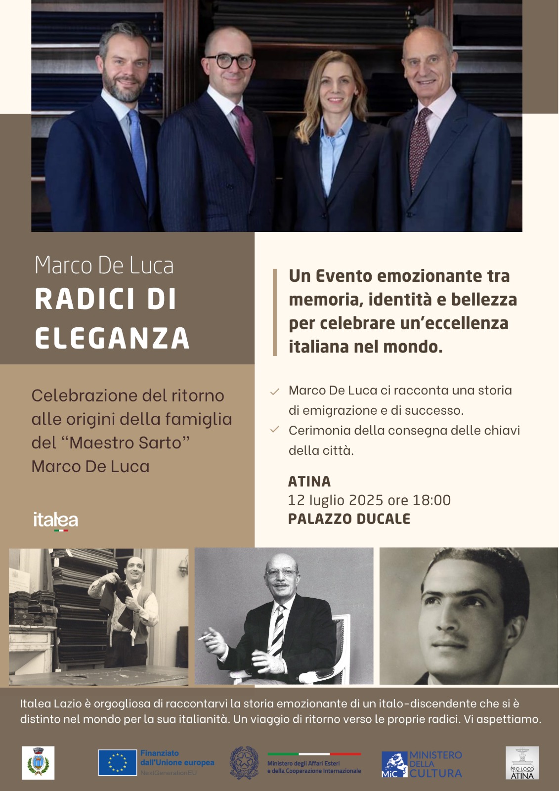 “Radici di Eleganza” non è solo un omaggio a una figura di successo, ma anche una celebrazione della Famiglia De Luca e del loro contributo alla storia e all’identità locale. L’evento mira a rafforzare i legami con la diaspora italiana, in particolare con coloro che, pur vivendo all’estero, mantengono vivo il ricordo e l’affetto per la propria terra d’origine. Attraverso la testimonianza di Marco De Luca, si esplorerà come le radici culturali e familiari possano influenzare e arricchire percorsi di vita e professionali di successo.