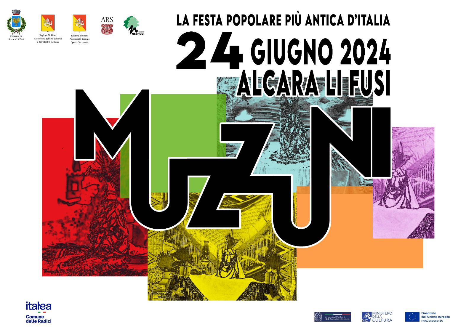 La Festa del Muzzuni è un rito pagano di origini antichissime, legato al culto di Demetra. Il Muzzuni è una brocca dal collo mozzato, dentro la quale viene messo a germogliare del grano. Viene rivestita da uno scialle nero o rosso e arricchito con fiori, spighe di grano e ori. La notte del 24 giugno, solstizio d’estate, nei vari quartieri del paese, vengono realizzati singolari altarini con pizzare, tappeti tessuti a mano con antichi telai e strumenti del lavoro contadino. Al centro di essi viene posto il Muzzuni, simbolo di fertilità. Intorno agli altarini si radunano uomini che intonano canti polifonici e donne che offrono cibi genuini come pane, formaggio e vino.