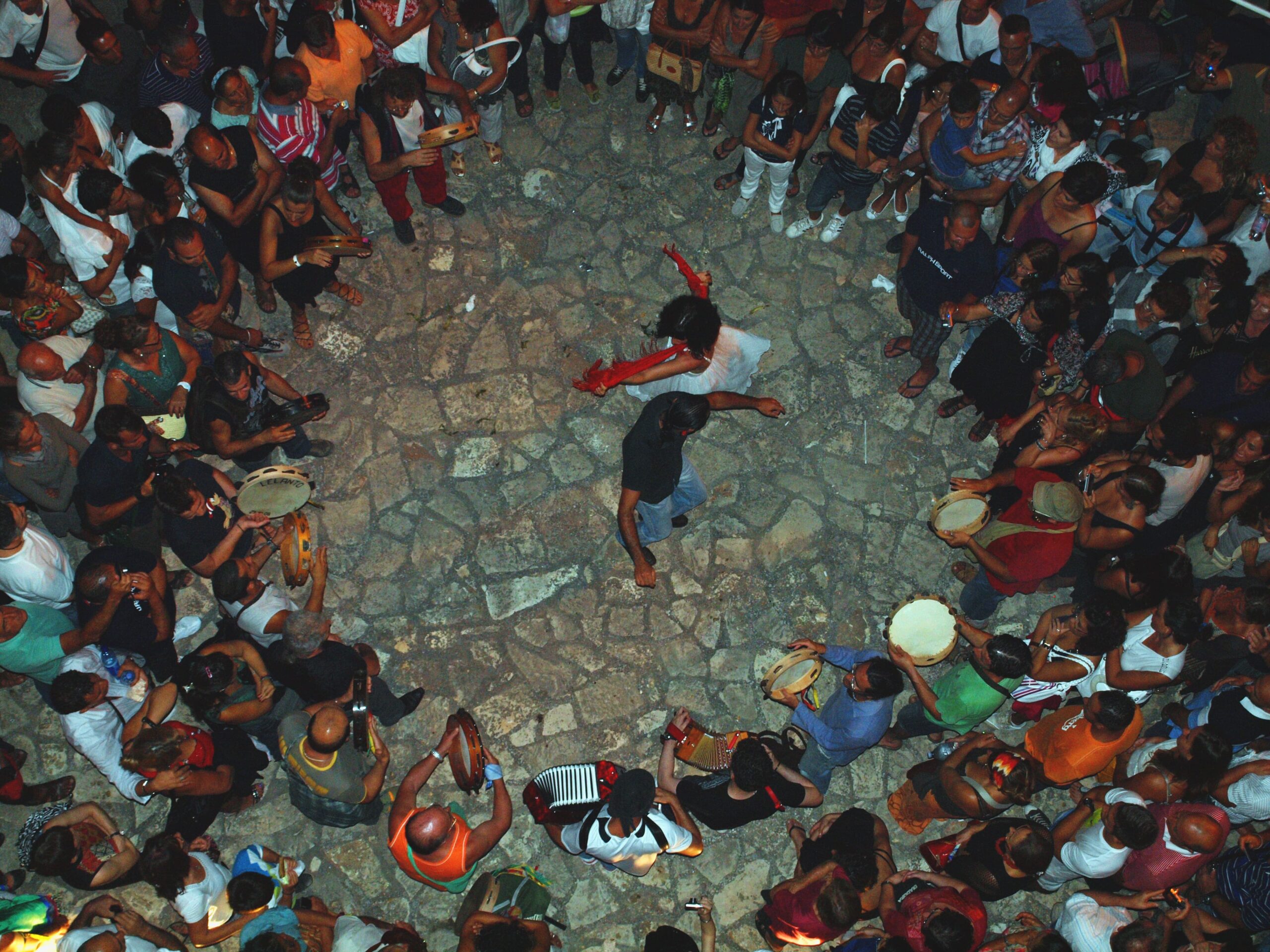 Non manca la componente musicale garantita dalla banda e dai tamburelli il cui ritmo scandisce la festa e la danza nelle “ronde”, i grandi cerchi di danzatori e suonatori di tamburello, che occupano la piazza per tutta la lunga notte tra la sera del 15 e l’alba del 16 agosto.