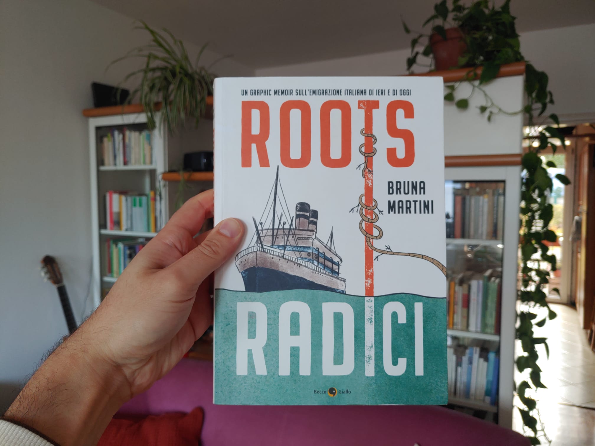 Em Roots | Radici, Bruna Martini nos conduz, através de ilustrações e cores envolventes, por uma jornada para descobrir a história de seu ancestral, Gracco Cornelio Rondalli, que partiu de Calolzio, na província de Lecco, em 1915. Sua memória havia sido completamente esquecida pela família. Bruna age como uma investigadora, trazendo à tona informações que revelam tanto a vida de seu trisavô quanto a de milhões de italianos que, como ele, deixaram a Itália em busca de uma nova vida.